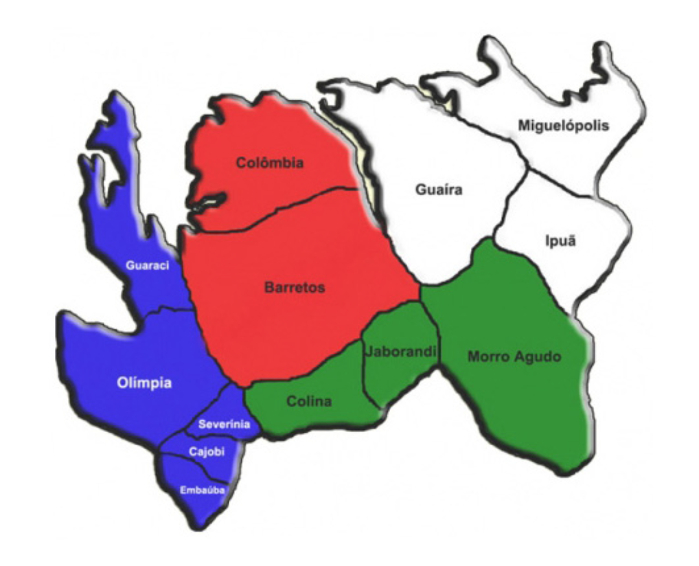 Municípios: Barretos, Cajobi, Colina, Colômbia, Embaúba, Guaíra, Guaraci, Ipuã, Jaborandi, Miguelópolis, Morro Agudo, Olímpia e Severínia